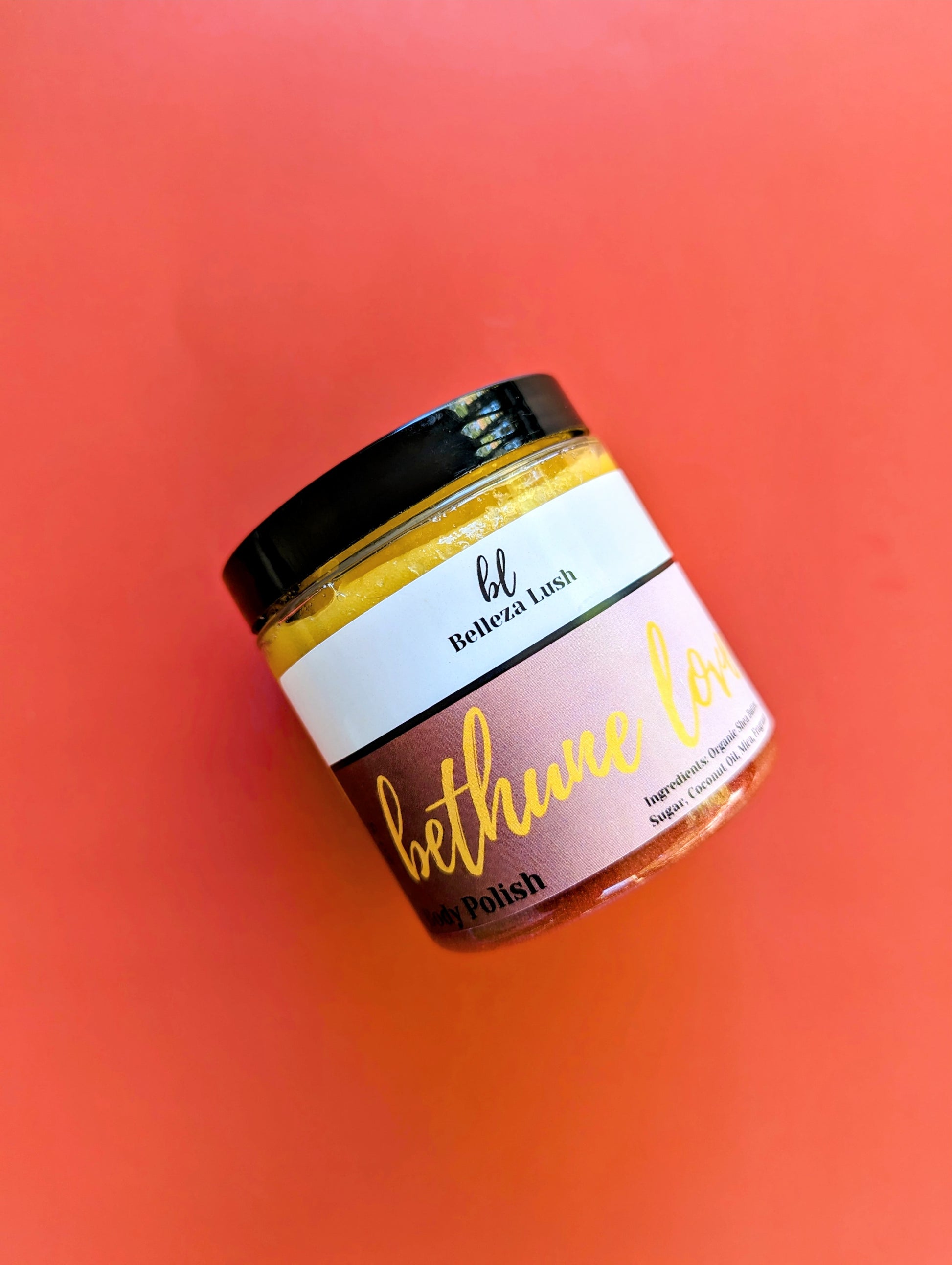 Ingredients: Organic Shea butter, coconut oil, sugar, mica, fragrance