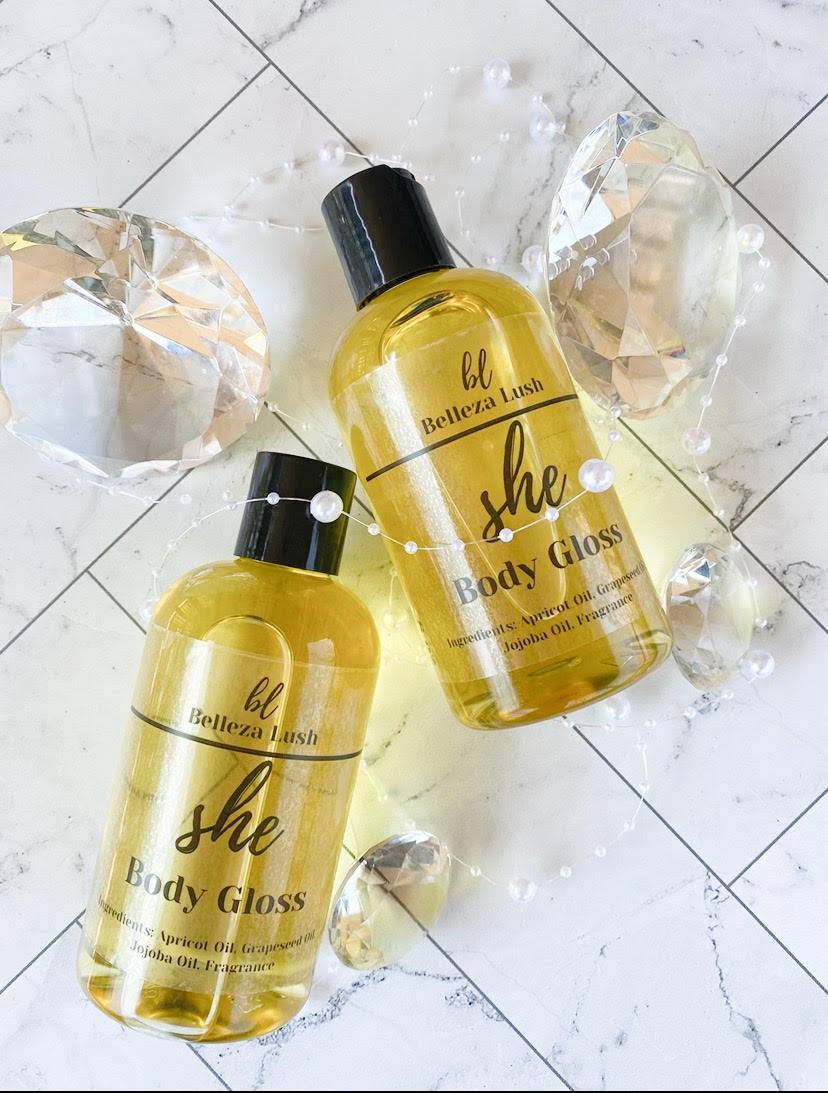 She Body Glosses are a feminine, smooth, moisturizing experience with a slight shine!